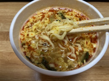 以前のリビジョン文書の先頭へ Share via Share via... Twitter LinkedIn Facebook Pinterest Telegram WhatsApp Yammer Reddit Teams最近の変更Send via e-Mail印刷パーマリンク × 中華三昧 榮林監修 酸辣湯麺 2022/6/12 香り立つひとさじという小袋がありますね。 香酢とごま油らしい。 スープ。 酸っぱくてうまいね~。 結構酸っぱいぞ。 玉子がふんだん。 food/cupn/myojo/sr.txt 最終更新: 2022/06/12by kaisousalad