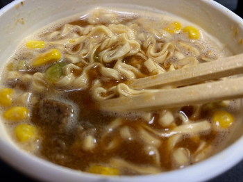 以前のリビジョン文書の先頭へ Share via Share via... Twitter LinkedIn Facebook Pinterest Telegram WhatsApp Yammer Reddit Teams最近の変更Send via e-Mail印刷パーマリンク × カップヌードル スーパー合体シリーズ2 欧風チーズカレー&みそ 2022/11/19 味噌のカップヌードルを食べたことがないが。 ふふ。面白いね。 カレーだけじゃないぜ、という味がする。 後味が味噌っぽい。 スープはちゃんとさらさらの液体なのに、ドロドロしているような気がしてしまう。 かやくは肉キューブとコーンとにんじん、キャベツ。 food/cupn/nissin/cn/cm.txt 最終更新: 2022/11/19by kaisousalad