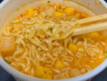 以前のリビジョン文書の先頭へ Share via Share via... Twitter LinkedIn Facebook Pinterest Telegram WhatsApp Yammer Reddit Teams最近の変更Send via e-Mail印刷パーマリンク × 目次 世界のカップヌードル シンガポール風ラクサ 2023/6/25 2023/10/21 世界のカップヌードル シンガポール風ラクサ 2023/6/25 ココナッツミルクの濃厚スパイシースープ。 おー、東南アジア感のニオイだ!香草?みたいな。 油揚げがたくさん入っている。 辛そうなペーストを入れる。 油揚げが甘くておいしい。 そこまで辛くない。 どこか甘味を感じる。 ラクサって何なのだろう。 麺料理らしい。 Wikiに載っている写真がうまそう。 なんか外国の馴染みない料理を作ってみたいな。 日本の料理すら作れないが。 材料とかは普通に売ってるんだろうか。 2023/10/21 甘めの匂い。 food/cupn/nissin/cn/cnl.txt 最終更新: 2023/10/21by kaisousalad