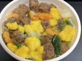 玉子と肉とエビとネギなど。なんか量が多い気がする。