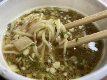 麺はノンフライ麺なんだろうか? 油揚げ麺じゃなさそう。やっぱりノンフライ良いな…。つるっとしているが強い感じ。