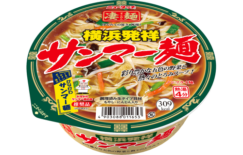 以前のリビジョン文書の先頭へ Share via Share via... Twitter LinkedIn Facebook Pinterest Telegram WhatsApp Yammer Reddit Teams最近の変更Send via e-Mail印刷パーマリンク × 目次 横浜発祥 サンマー麺 2021/12/30 2022/8/12 横浜発祥 サンマー麺 2021/12/30 サンマー麺て何? パッケージには、野菜ととろみスープと書いている。 これに近かったりして。 とろみがあるので、熱が保たれますね。 これとはちょっと違うな。甘さは控えめ。 すっきりしているので、いつでも食べられそう。 2022/8/12 サンマー麺、どんなものか思い出せず二度目へ。 Wikipediaによると、醤油ラーメンにもやし入りのあんをかけたものね。 湯入れ前のかやくは、ニラとネギの合わさったようなニオイが強い。多分。 うまいな…。 野菜がシャキシャキでうまい。 ちょっと甘めの醤油ラーメンだ。 food/cupn/nt/san.txt 最終更新: 2022/08/12by kaisousalad