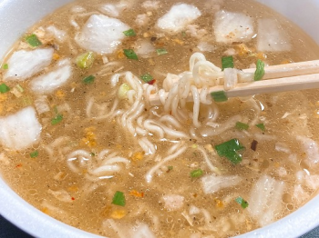 以前のリビジョン文書の先頭へ Share via Share via... Twitter LinkedIn Facebook Pinterest Telegram WhatsApp Yammer Reddit Teams最近の変更Send via e-Mail印刷パーマリンク × 煮干香るコク塩ラーメン 2023/2/26 塩ラーメンと煮干しでノンフライで4分だ! なんかかすかに花火のニオイする。 スープ。 あ~、煮干し感がかなりある! 後入れの粉が力を発揮しているのかも。 麺はカップ麺だね。でもノンフライ。 白菜が適量入っている。 あっ、肉もあった。 food/cupn/sugakiya/kks.txt 最終更新: 2023/03/19by kaisousalad